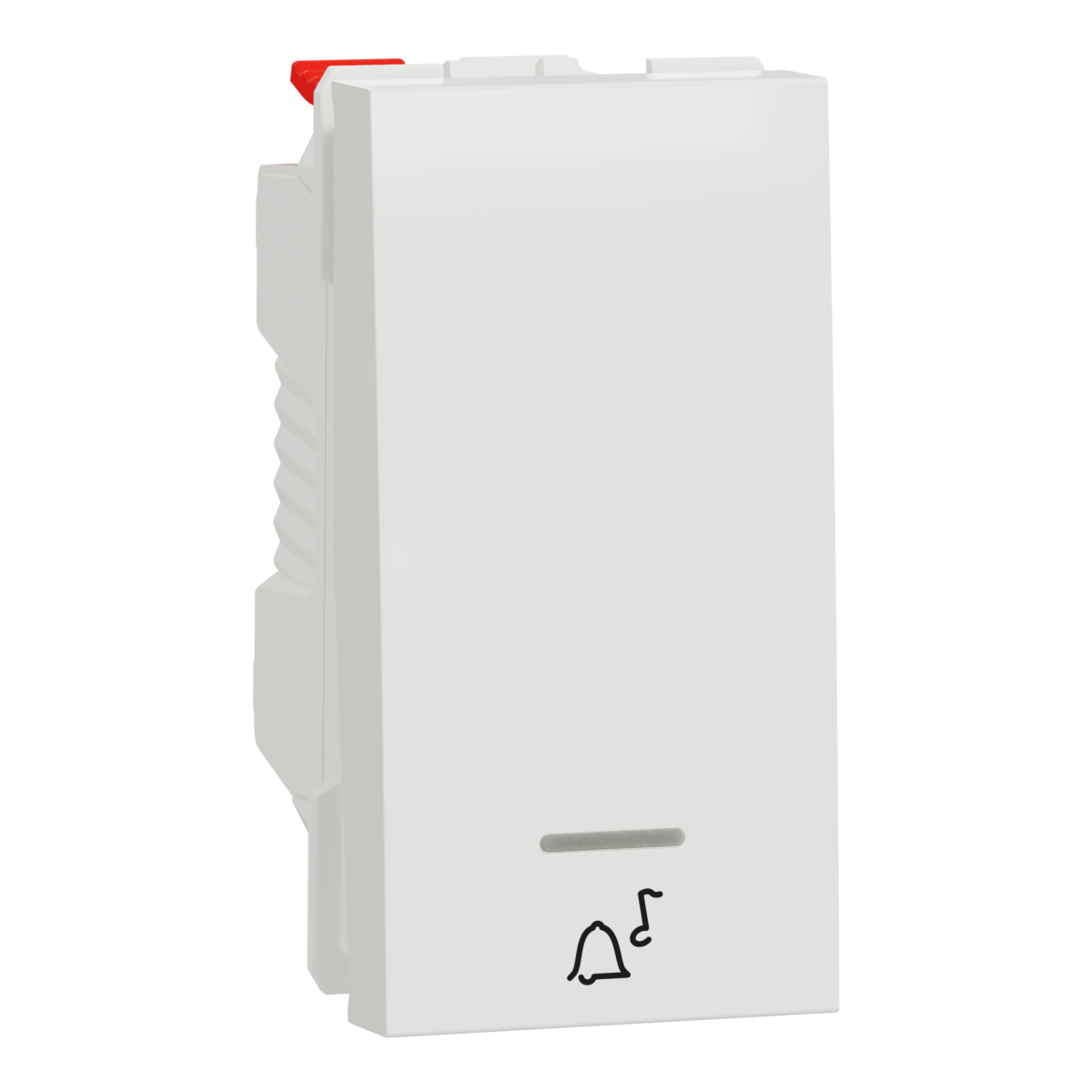 مفتاح زر ضغط، جديد Unica، 10A، وحدة واحدة، لا مع مصباح موقع، مع رمز جرس، أبيض