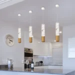 نجفة نازل من السقف من مادة الرخام و الالمونيوم المغطى بالاكتروستاتك الذهبي